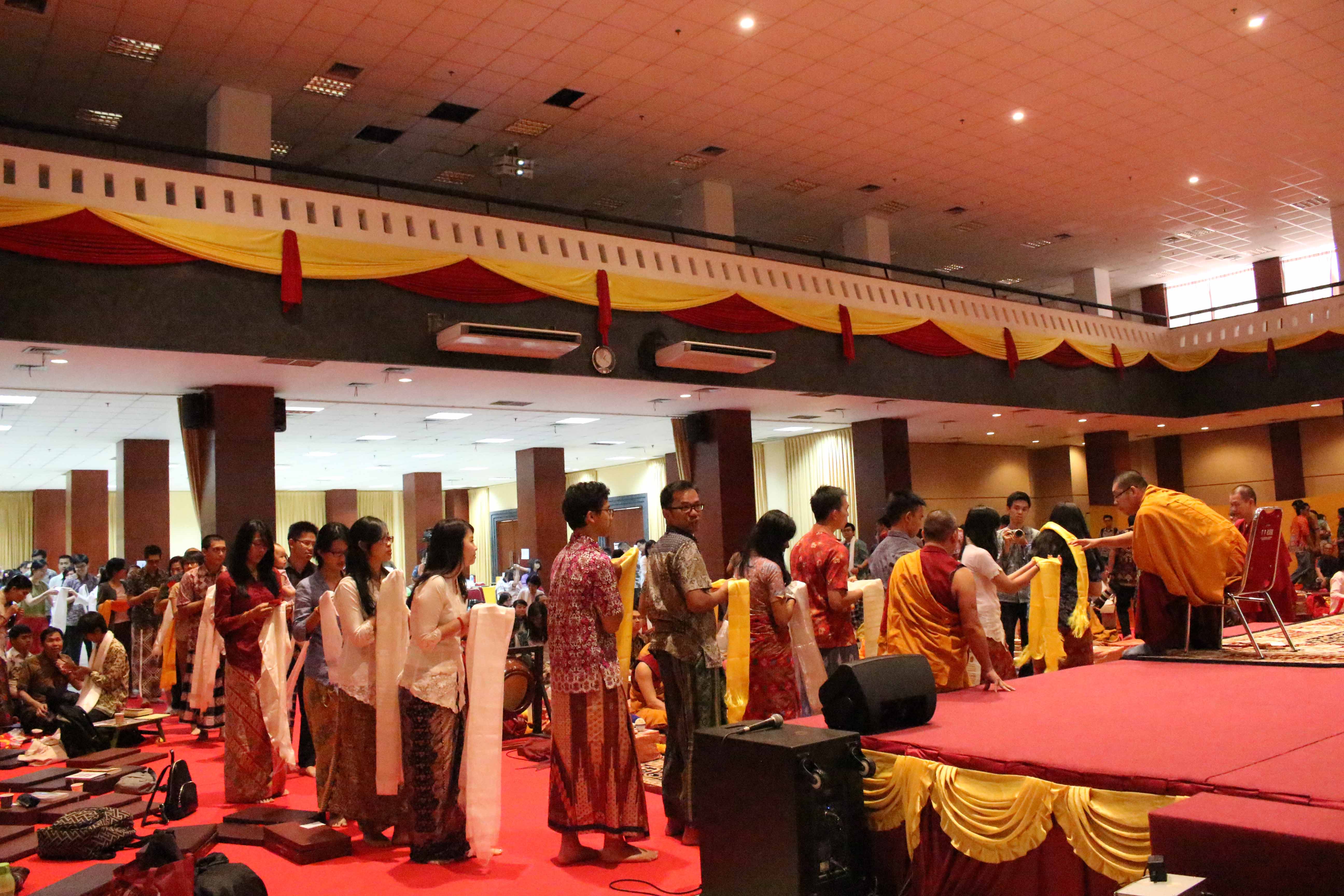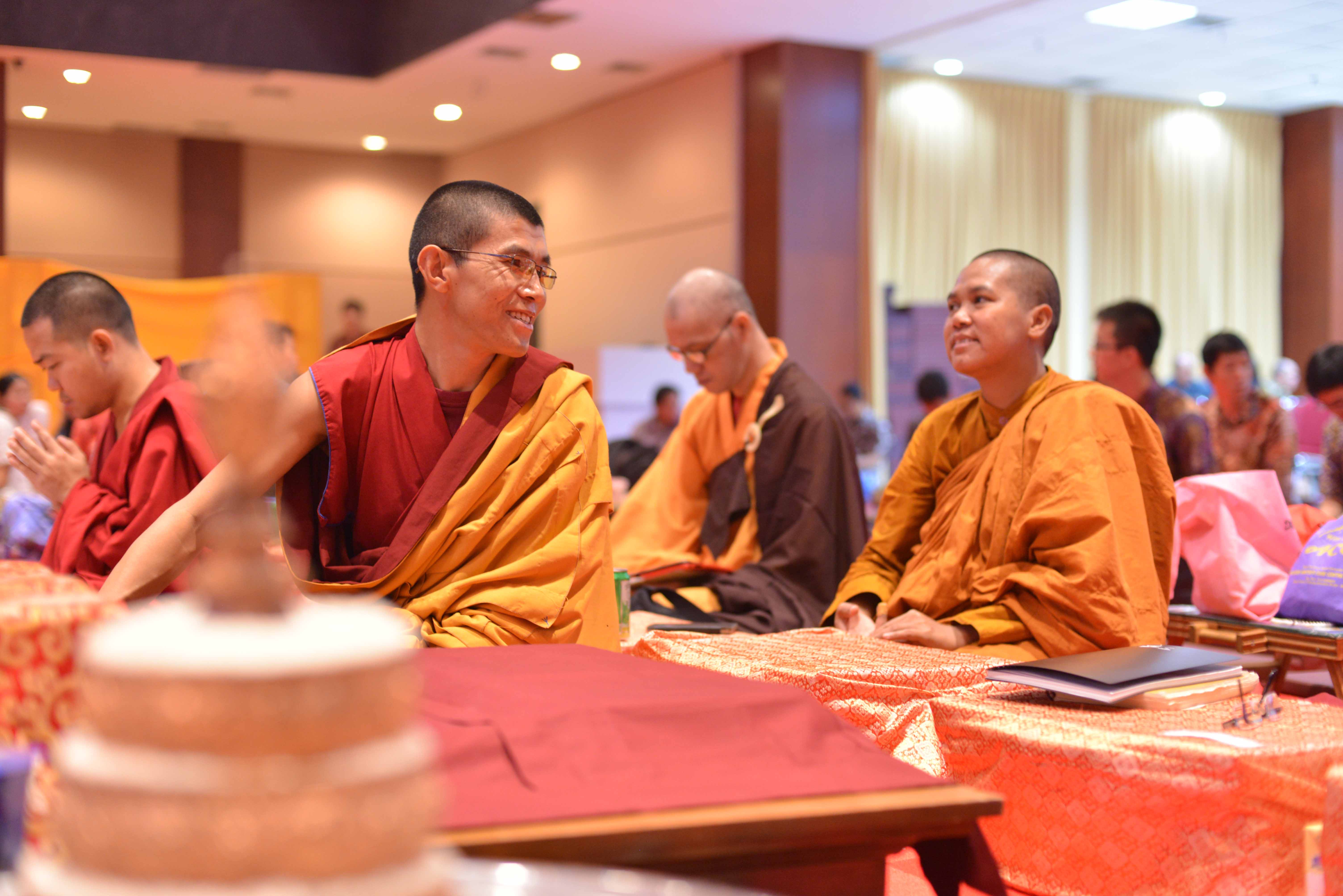 Biksu dan Biksuni dari berbagai aliran yang mengikuti Indonesia Lamrim Retreat 2016 menunggu sesi dimulai