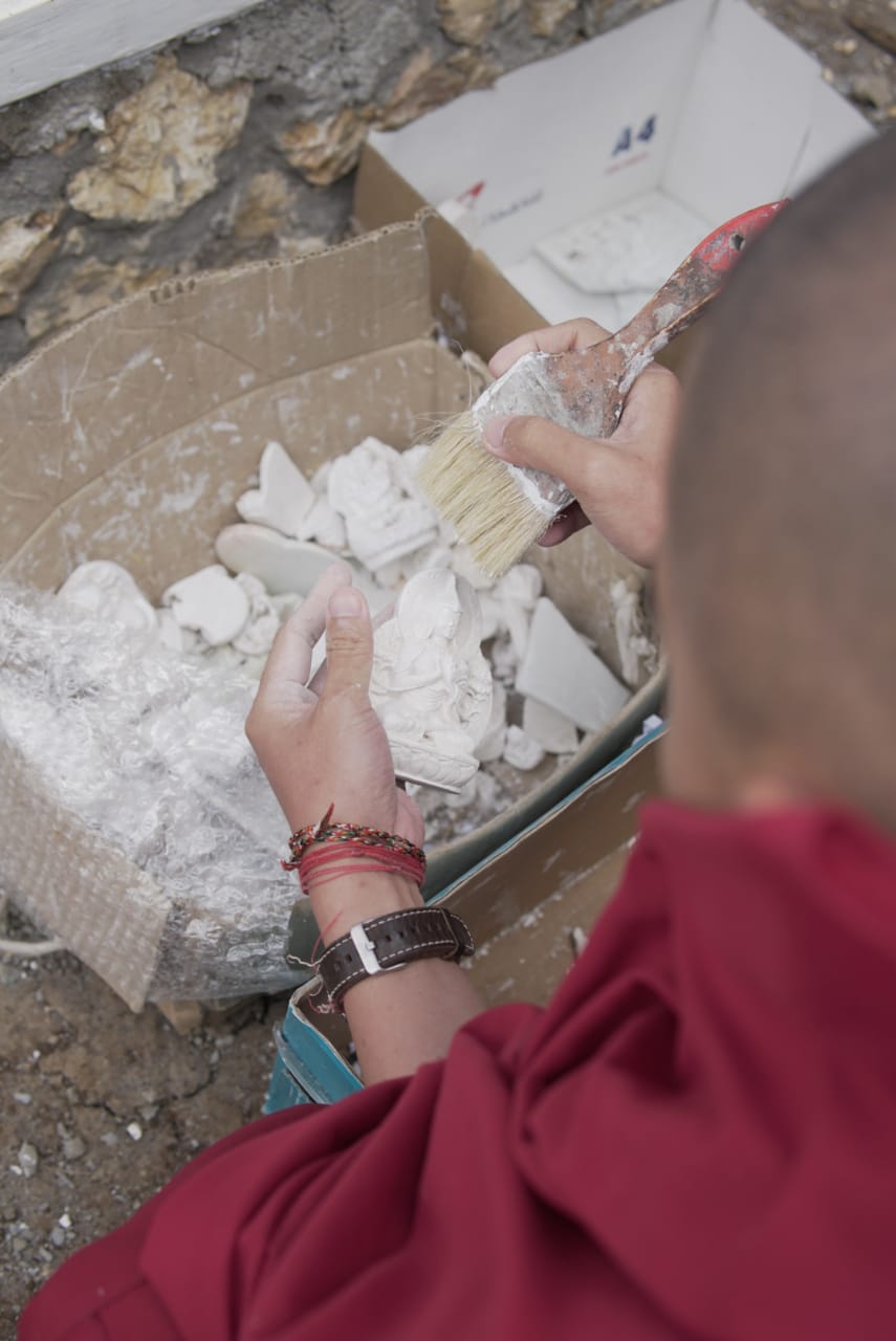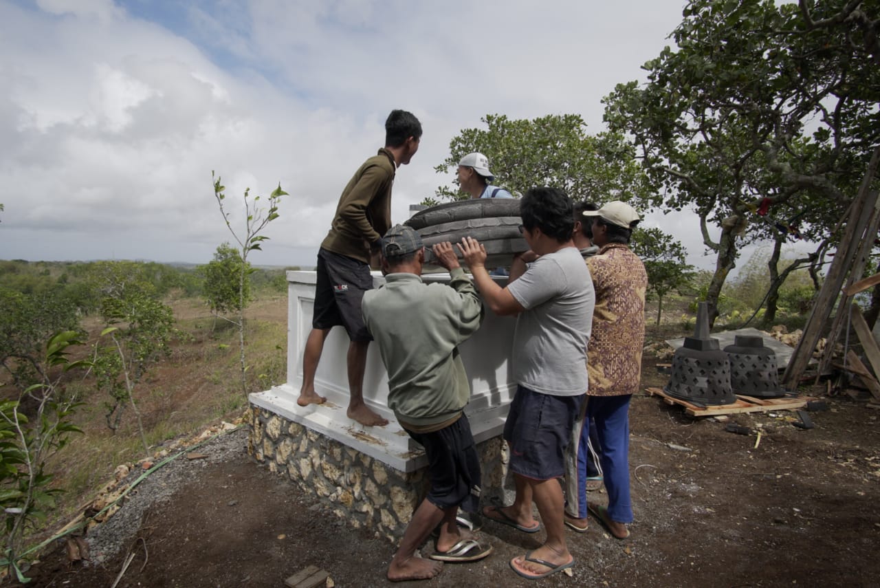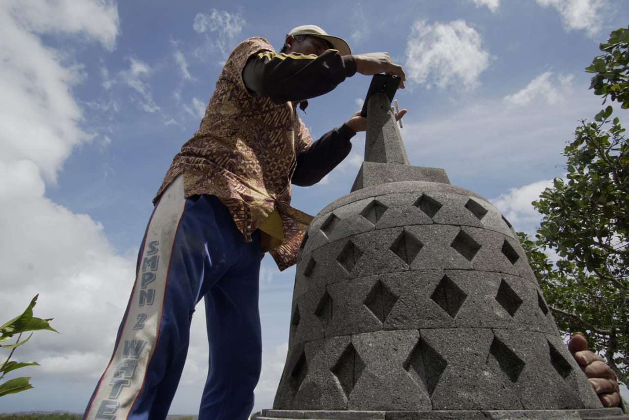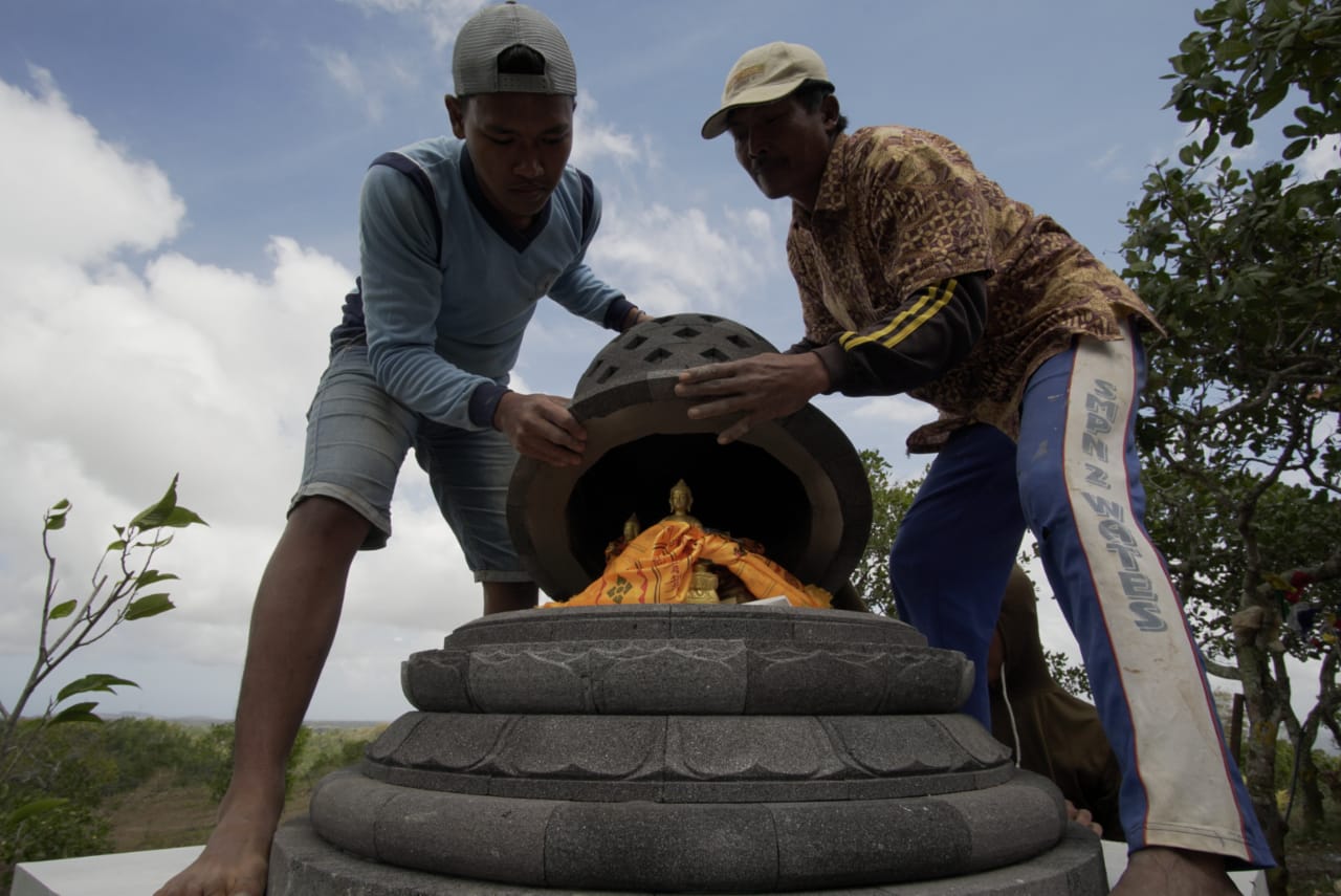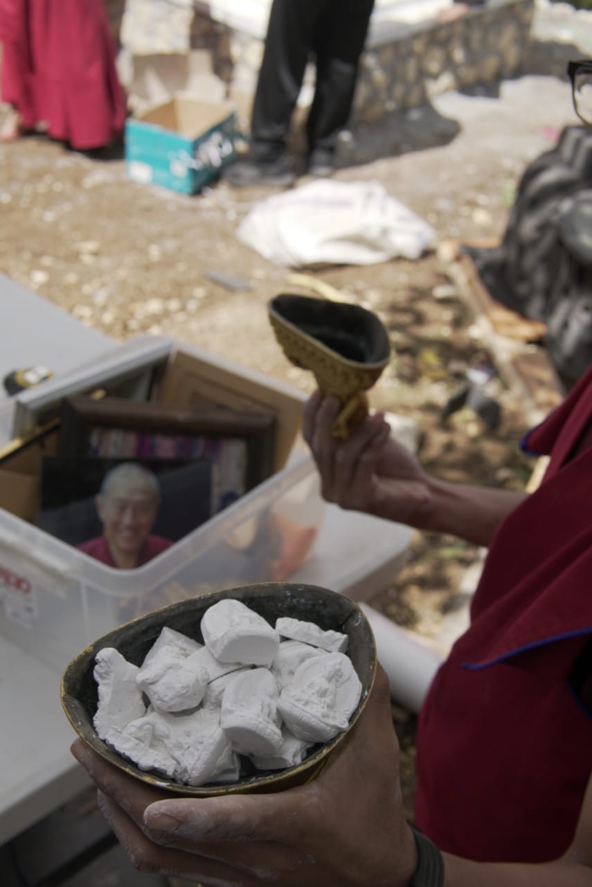 The next year, in 1990, Rinpoche visited Singapore and Malaysia. In Malaysia, Rinpoche met Madame Sylvia Tjakra and in the later years the Dharma Center KTCL was established. On August 3 and 4, at the site of the Indonesia Gaden Syeydrub Nampar Gyelwei Ling, Madame Sylvia’s daughter, Madame Irene Hartanto conducted the ritual for a commemorative stupa for Madame Sylvia. The stupa was of the Borobudur style. After the contents of the Stupe were put inside, a consecration ritual was done by Madame Irene Hartanto, together with the monastic Sangha members of Kadam Choeling Indonesia. The commemorative stupa was dedicated for Madame Sylvia Tjakra (Omah). May the virtue generated from Madame Sylvia’s virtuous activities for the dharma and the spiritual master during her active years create the condition for her to be able to return again and again in good condition, whereby she could meet with the spiritual master and the virtuous community, in order to continue the dharma practice until the attainment of perfect Enlightenment.