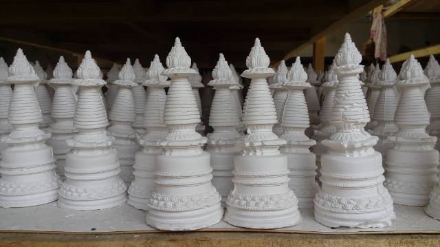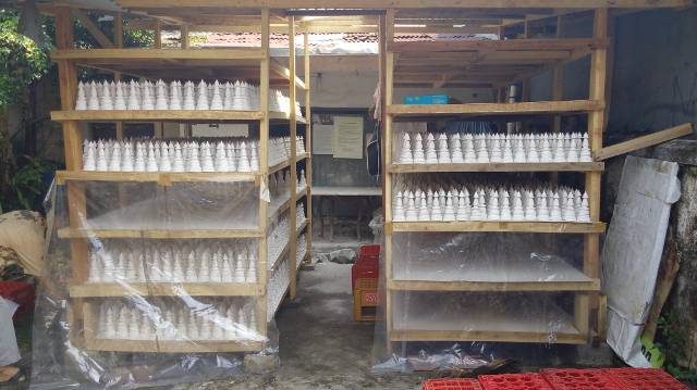 - in Bandung (Indonesia), the retreat that initially had been planned with Kyabje Rinpoche the end of December has been replaced by a Pray for Rinpoche retreat while everybody can participate in the production of 100.000 Stupas (see photos) and the offerings of 10 million lights. (The production of the Stupas has started already some time ago after the advice of the oracle in Dagpo Dratsang two years ago. At the moment around 4000 Stupas have been produced).