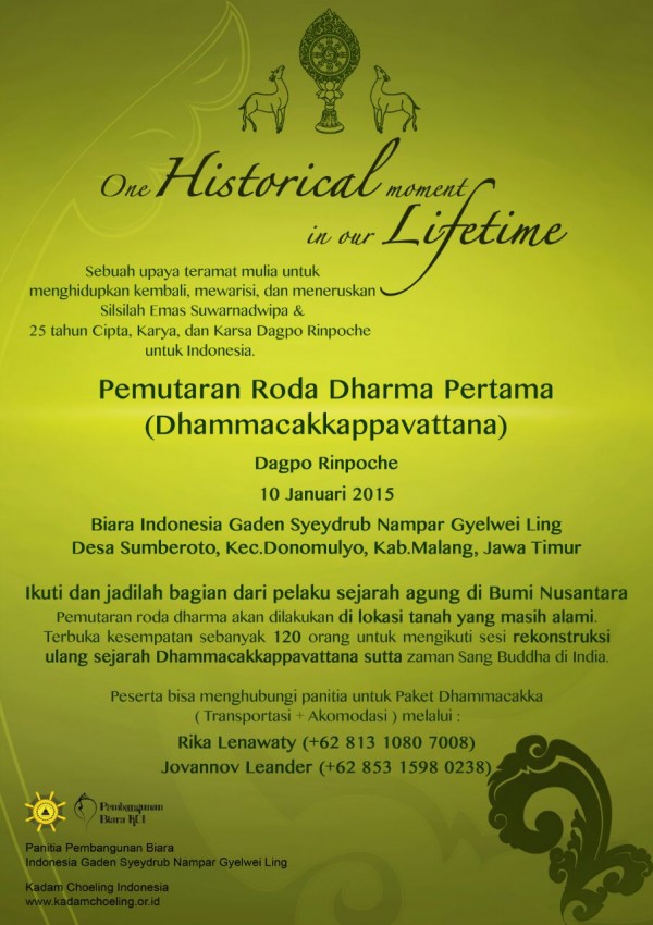 Terbuka kesempatan 120 orang pendaftar untuk mengikuti Paket Dhammacakka (Transportasi + Akomodasi) dengan menghubungi: