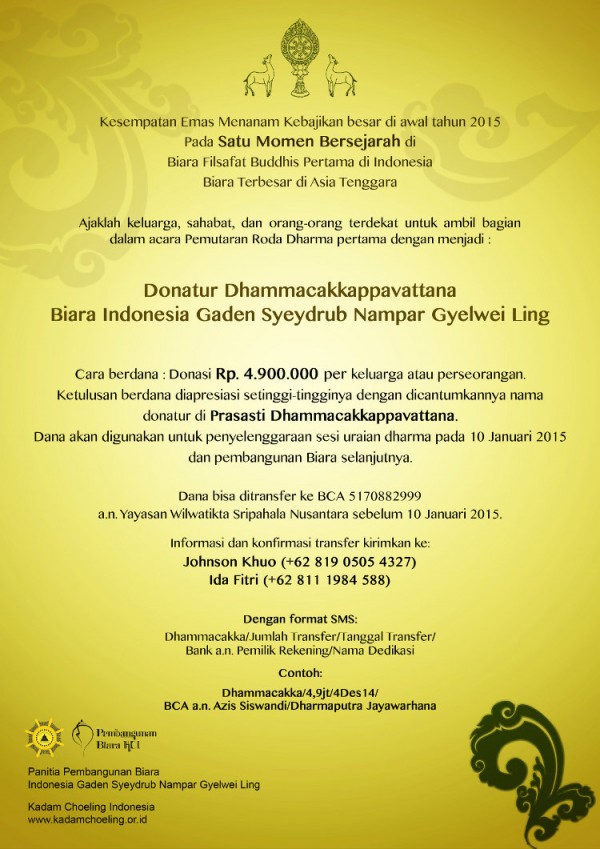 Donatur Dhammacakkappavattana – Kesempatan Emas di Awal 2015
