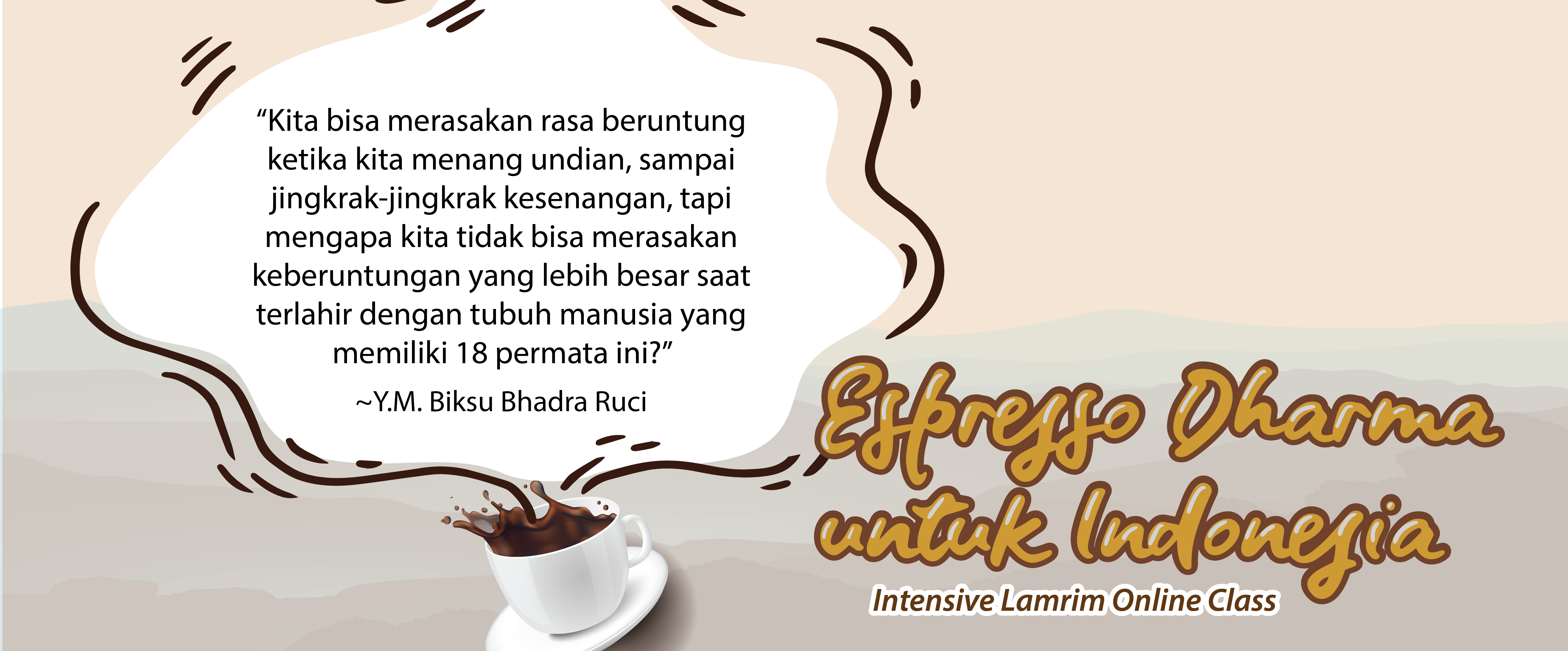 Sesi Espresso Dharma kali ini dimulai dengan motivasi dari Y.M. Biksu Bhadra Ruci yang selalu mengingatkan kita bahwa saat ini harus memiliki motivasi untuk berpraktik Dharma dan motivasi ini harus diikuti oleh tekad yang bisa bertahan lama dan tidak putus. Motivasi untuk apa? Motivasi untuk berupaya sekuat tenaga untuk menarik manfaat sebesar-besarnya dari kehidupan kita sebagai manusia yang amat berharga tapi sangat cepat berlalu ini.