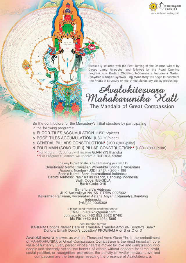 Blessed-ly initiated with the First Turning of the Dharma Wheel by Dagpo Lama Rinpoche, and followed by the Road Opening program, now Kadam Choeling Indonesia & Indonesia Gaden Syeydrub Nampar Gyelwei Ling Monastery will begin to construct the Phase A structure on top of the Monastery soil by presenting: