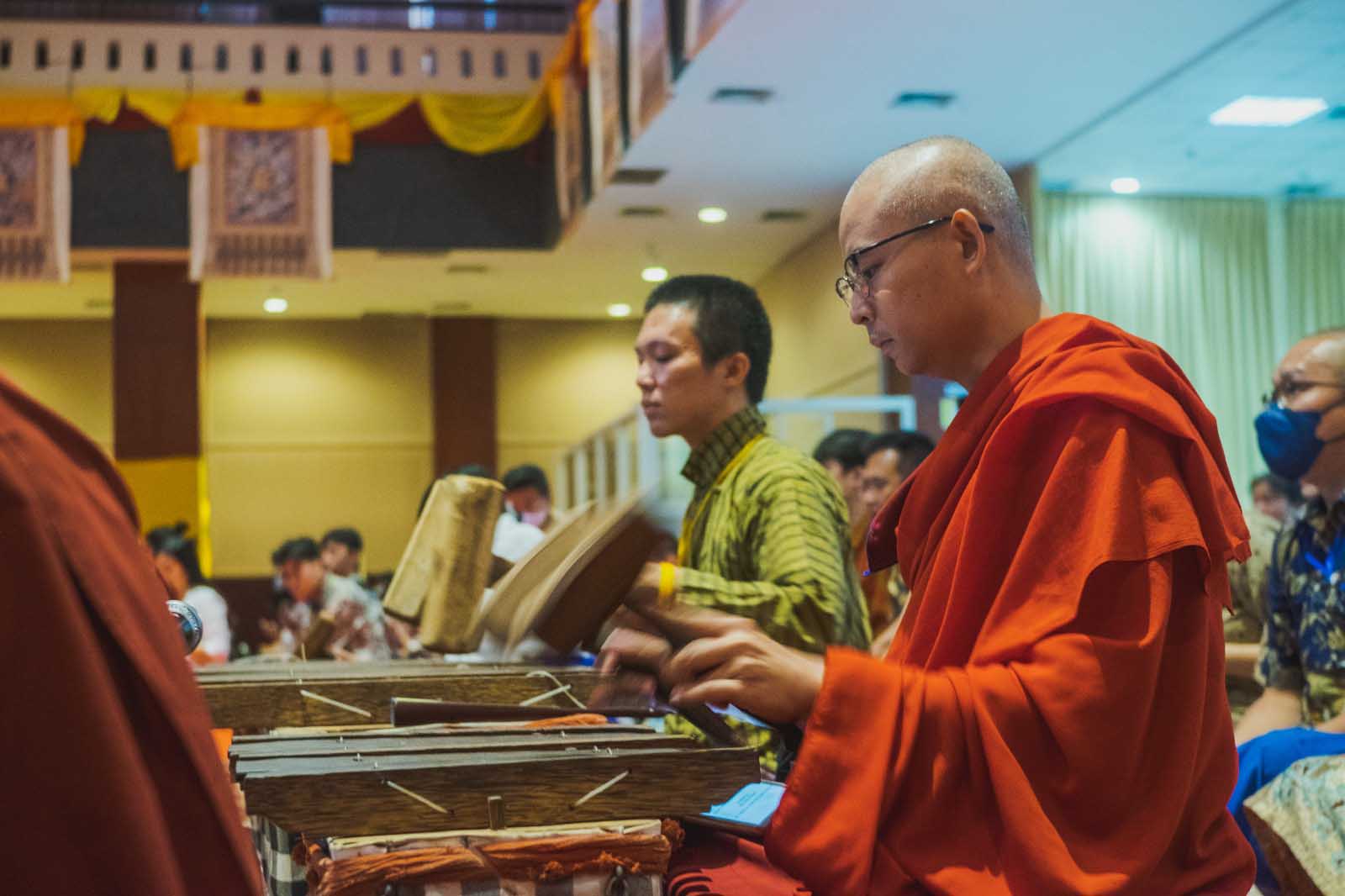 Komunitas Buddhis Kadam Choeling Indonesia (KCI) memainkan gamelan selonding, alat musik pengiring upacara keagamaan dari peradaban Hindu-Buddha Nusantara, dalam acara Waisak se-Jabodetabek tanggal 3–4 Juni 2023 di Prasadha Jinarakkhita, Jakarta Barat. Gamelan ini mengiringi doa-doa dalam bahasa Kawi dan Sanskerta yang dilantunkan oleh lebih dari 300 orang.