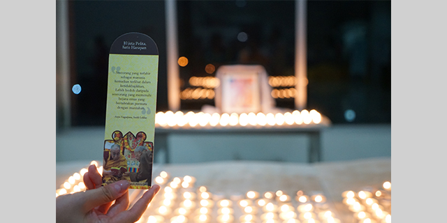 Kutipan bijak berlatar persembahan pelita untuk umur panjang Yang Mulia Dagpo Rinpoche yang dinyalakan selama retret berlangsung