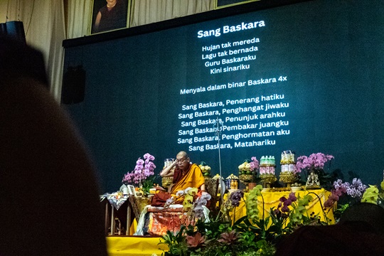 Andre memimpin puja Upacara Doa Umur Panjang untuk Y.M. Suhu Bhadra Ruci.
