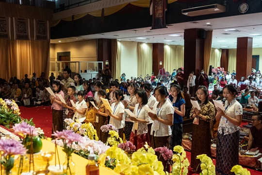 Pelantunan teks “Doa Umur Panjang untuk Y.M. Suhu Bhadra Ruci” dalam bahasa Tibet oleh anak-anak kelas Tibet KCI.