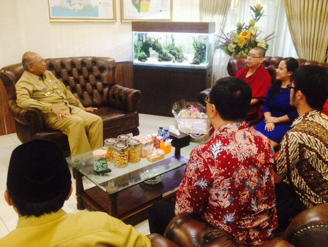 Kunjungan Dewan Pembina dan Pengurus Yayasan Wilwatikta Sriphala Nusantara bersama Kepala Desa Sumberoto, Budi Utomo S.E dan Kepala BPD, Bpk Alek S ke kantor Bupati Malang, Ir. Rendra Kresna dalam rangka anjangsana memperkenalkan tujuan yayasan dan perkembangan proses pembangunan pusdiklat Indonesia Gaden Syeydrub Nampar Gyelwei Ling.