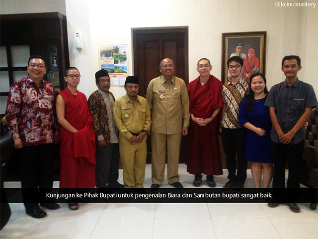 Pertengahan Mei 2016 diadakan kunjungan ke Ketua Walubi Kota Malang dan Walubi Kabupaten Malang oleh tim Pembangunan Biara Indonesia Gaden Syeydrub Nampar Gyelwei Ling, selain itu juga berkunjung ke Pihak Bupati untuk pengenalan Biara. Sambutan Bupati terhadap hal ini sangat baik.