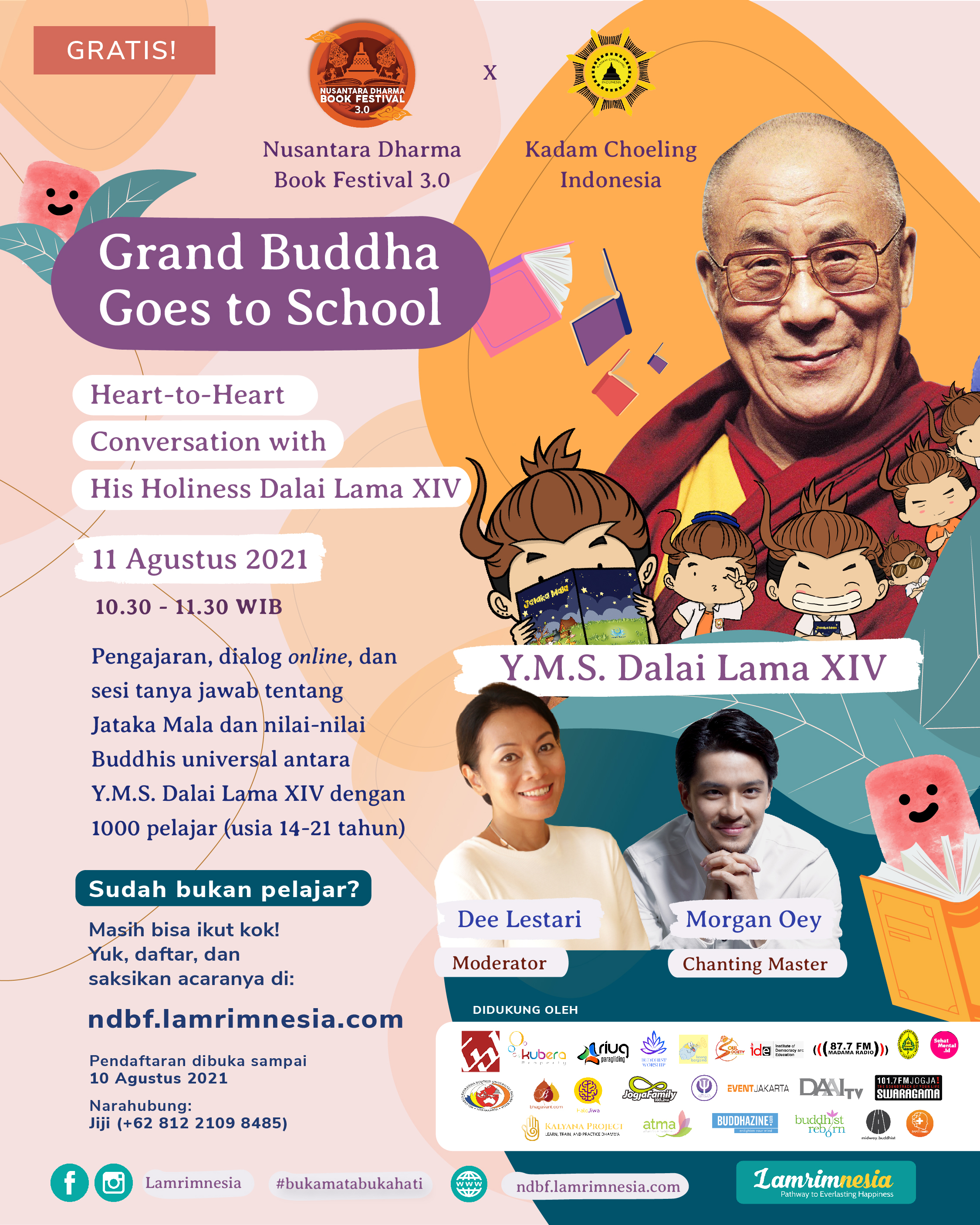 Pendaftaran Grand Buddha Goes to School 2021 & informasi NDBF 3.0 bisa didapatkan di situs ndbf.lamrimnesia.com
