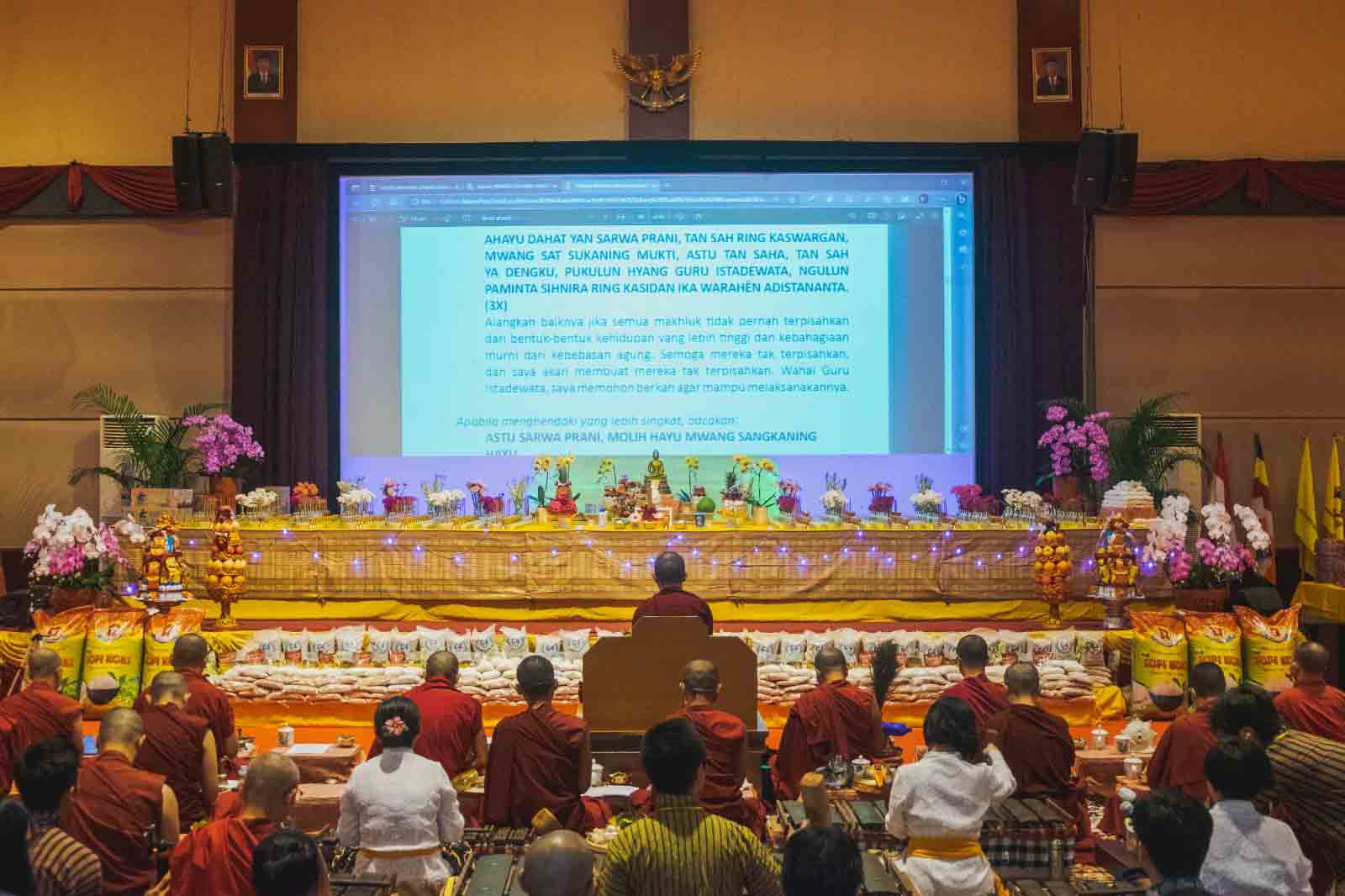 Biksu SVI dan para umat sedang melantunkan Puja Waisak dalam bahasa Kawi