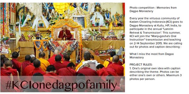 Every year the virtuous community of Kadam Choeling Indonesia (KCI) goes to Dagpo Monastery at Kullu, HP, India, to participate in the annual “Lamrim Retreat & Transmission”. This summer, KCI will join the “Manjugosha’s Oral Instruction” transmission and teaching on 2-14 September 2015. We are calling out for photos and caption describing: