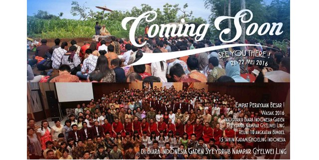 Menyambut Waisak yang jatuh pada tanggal 22 Mei 2016, Kadam Choeling Indonesia akan menggelar peringatan Trisuci Waisak sekaligus ulang tahun yang ke 15 (terhitung sejak 2001) dan syukuran 10 angkatan Bimbel KCI (terhitung dari Angkatan 2005), yang akan dilaksanakan di tanah Biara Indonesia Gaden Syedrup Nampar Gyelwei Ling. Acara yang sekaligus merupakan Inaugurasi Tanah Biara ini akan digelar pada 21 dan 22 Mei 2016. Nantikan segera informasi lengkap berikutnya.