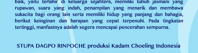Membangun stupa mengandung manfaat teramat besar dan menggoreskan jejak karma sangat positif di dalam batin. Manfaatnya berupa kelahiran yang baik, yaitu terlahir di keluarga sejahtera, memiliki tubuh jasmani yang rupawan, suara yang indah, penampilan yang menarik dan membawa sukacita bagi orang lain serta memiliki hidup yang panjang dan bahagia, berikut keinginan dan harapan yang cepat terpenuhi. Pada tingkatan yang tertinggi, manfaatnya adalah segera mencapai pencerahan yang sempurna.