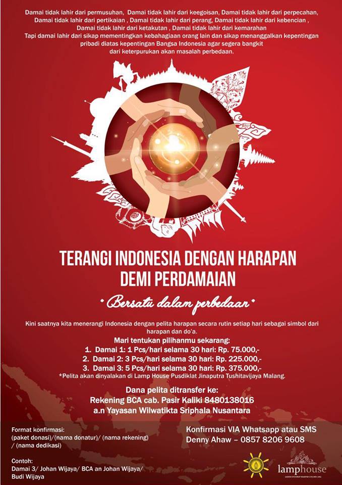 Mari berperan aktif menjadikan Indonesia senantiasa damai, dengan menyalakan pelita secara rutin sambil memanjatkan harapan yang tulus bagi Indonesia tercinta. 🙏🏻