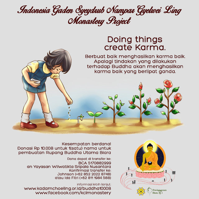 Semua orang ingin bahagia, tidak ingin menderita. Untuk berbahagia, kita perlu menciptakan sebab-sebab kebahagiaan. Untuk menciptakan sebab-sebab kebahagiaan, kita bisa melakukan sebuah tindakan yang ditujukan pada objek mulia yang memiliki kekuatan besar sehingga tindakan yang ditujukan pada objek tersebut bisa menghasilkan akibat yang besar pula.