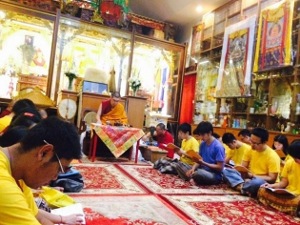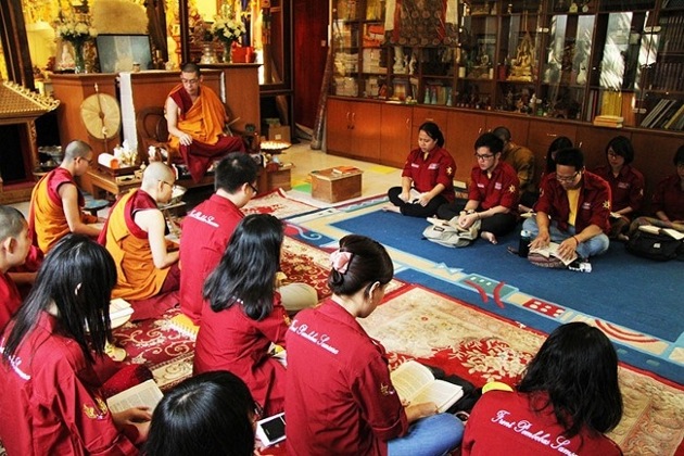 Sesi malam kembali dimulai dengan khusyuk dengan melantunkan Lama Choepa dipimpin oleh Suhu Bhadra Ruci.
