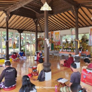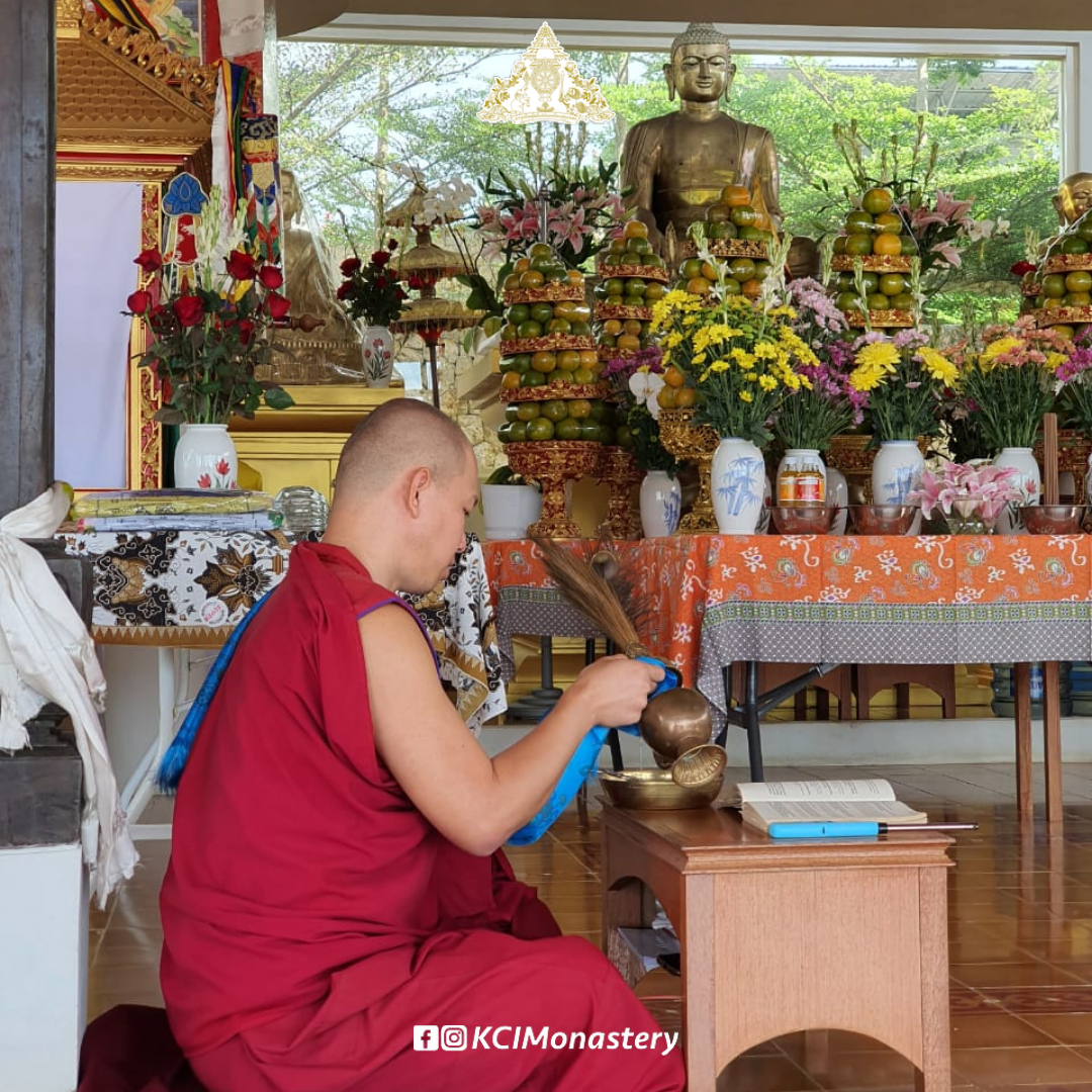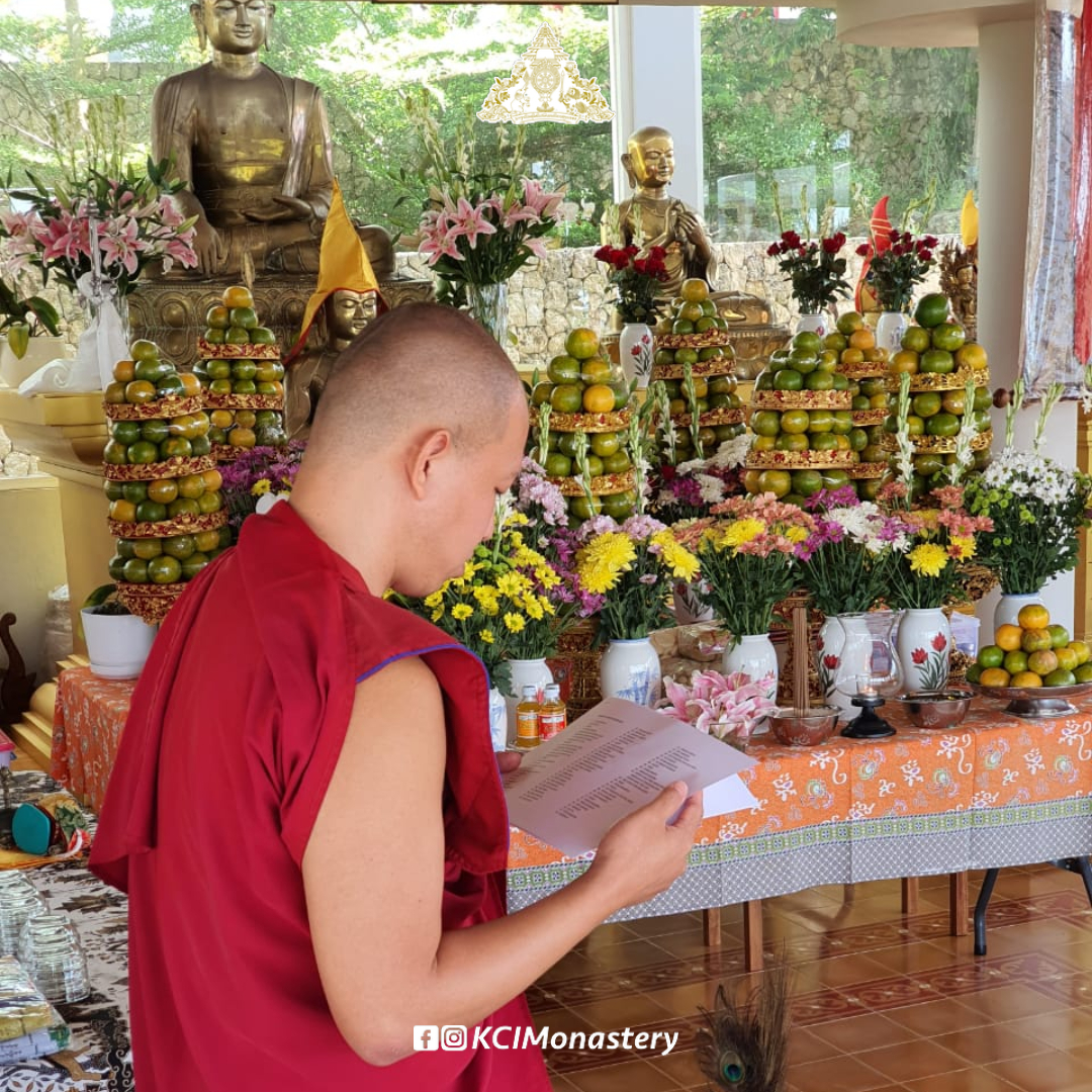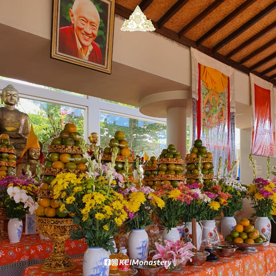 Untuk memperingati peristiwa penting ini, pagi tadi telah dilaksanakan puja dan juga persembahan bunga dan buah. Puja dipimpin oleh salah satu anggota Sangha monastik di Biara, yaitu Y.M. Lobsang Tsultrim. Sebanyak 391 nama dedikasi telah dibacakan selama sesi puja.