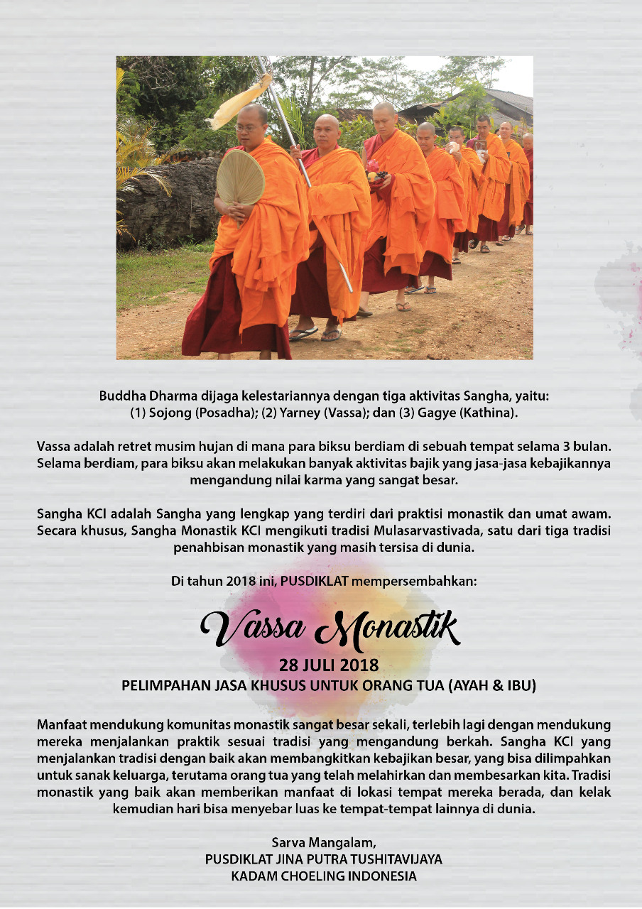 *Sangha Monastik KCI akan melaksanakan tradisi suci berdiam di sebuah lokasi sambil melakukan kebajikan.